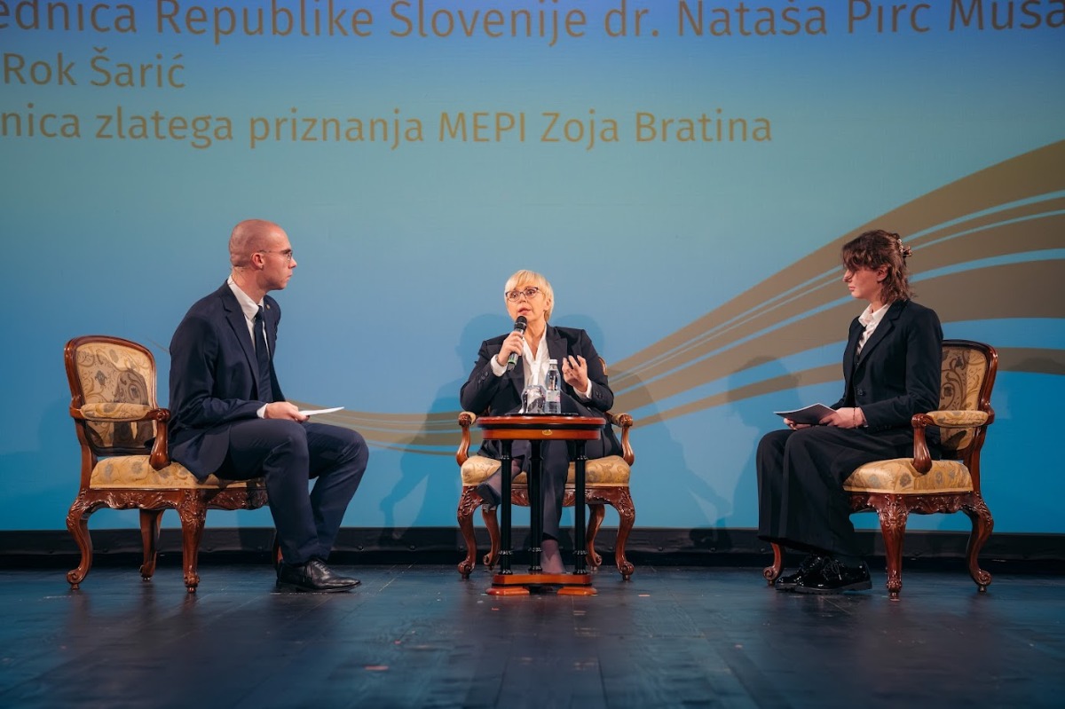 Po zaslugi prizadevnih dijakinj in mentoric smo imeli priložnost sodelovati na 9. slavnostni podelitvi zlatih MEPI priznanj, ki je potekala 1. decembra 2025 pod častnim pokroviteljstvom predsednice Republike Slovenije dr. Nataše Pirc Musar ... (Več na https://www.gssrm.si/novice/slavnostna-podelitev-zlatih-priznanj-mepi_3) Foto: Marko Pleterski in Branislav Rauter