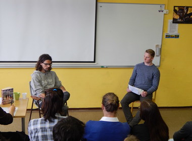 četrtek, 21.4.2016GSŠRM filozofi, 2.č in gosti smo se v torek zjutraj srečali z vojnim poročevalcem Dela, dopisnikom mnogih drugih medijev, pisateljem, filozofom, sociologom, ultramaratoncem in osebnostjo tega tedna na Valu 202 Boštjanom Videmškom. Pogovor z...