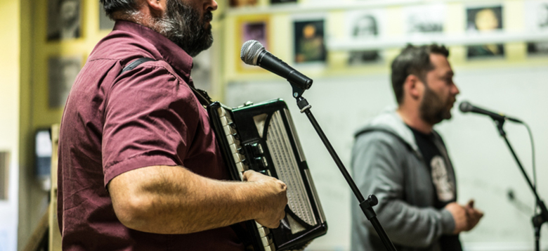 Tudi na naši šoli smo mu, kot se to spodobi za na kulturnem področju razgibano in tako dejavno ustanovo, namenili veliko pozornosti. Pripravljen je bil več kot dve-urni program, ki se je začel s pripovedovalskim uvodom dueta Vroča Župa. Lokalna kulturnika, Goran Završnik in Rok Kosec sta se vživela v like pravljic različnih žanrov in tako skoznje posredovala nauke, začinjene z družbeno satiro.