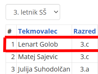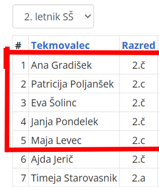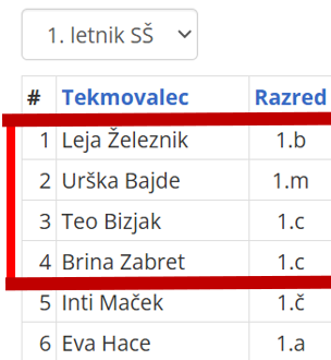 Posebej je označenih 10 tekmovalcev, ki so se uvrstili na državno tekmovanje. To bo v soboto, 31.1.2026.
