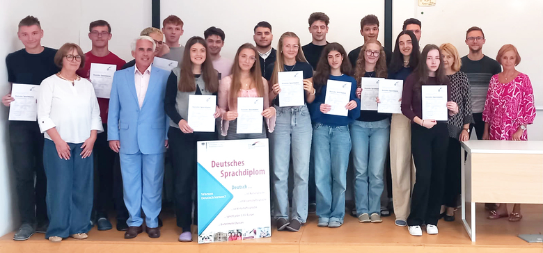 Kot vsako leto ob dnevu evropskih jezikov (26. 9. september) namenimo ta dan tudi slavnostni podelitvi diplom nemškega jezikovnega certifikata DSD I dijakom, ki so ga uspešno opravili na nivoju znanja nemškega jezika B1 . V šolskem letu 2024 je bilo tako uspešnih 18 dijakov.