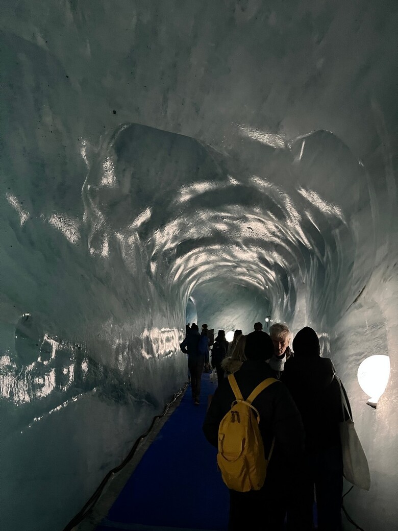 Sledilo je terensko delo, zato smo se z zobato železnico odpravili do dostopne točne za na ledenik. Videli smo, kako neverjetno hitro se tali, saj smo se z gondolo spustili do začetka le-tega in se sprehodili po ledeni jami. To je res poseben občutek, ko te obdajajo ledene stene, pa sploh ni ne mraz ne tesnobno.