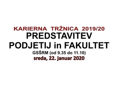 ponedeljek, 20.1.2020Odločitev dijakov, kateri študij izbrati, je pogosto vse prej kot enostavna. Da bi jim izbiro vsaj nekoliko olajšali, na šoli že nekaj let prirejamo KARIERNO TRŽNICO. Na povabilo k sodelovanju se odziva vedno več fakultet in...