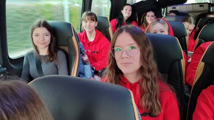 Avtobus, poln rdečih Erasmusovih kapucarjev je danes odpeljal več kot ducat naših mladenk in...