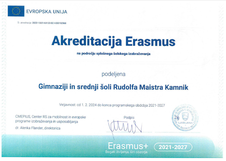 AKREDITACIJA ERASMUS NA PODROČJU SPLOŠNEGA ŠOLSKEGA IZOBRAŽEVANJA (2024 – 2027)